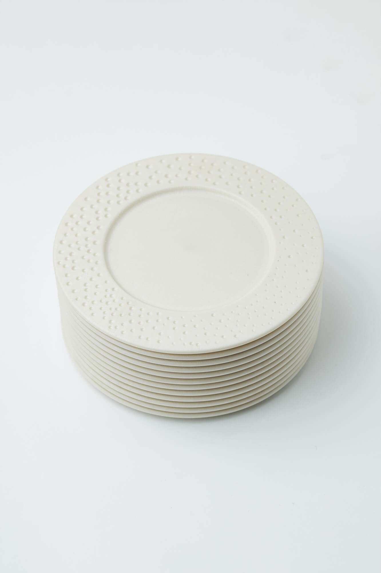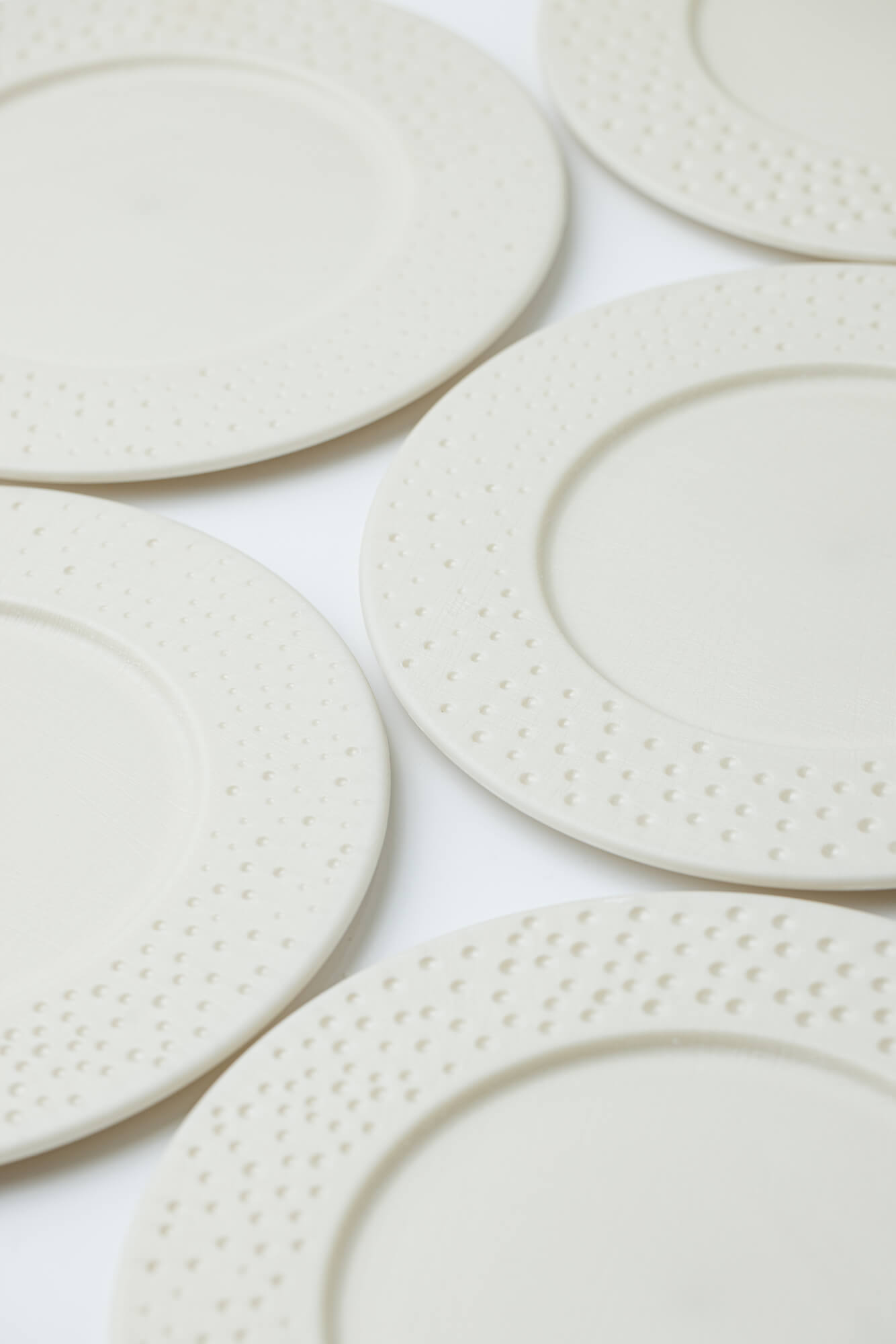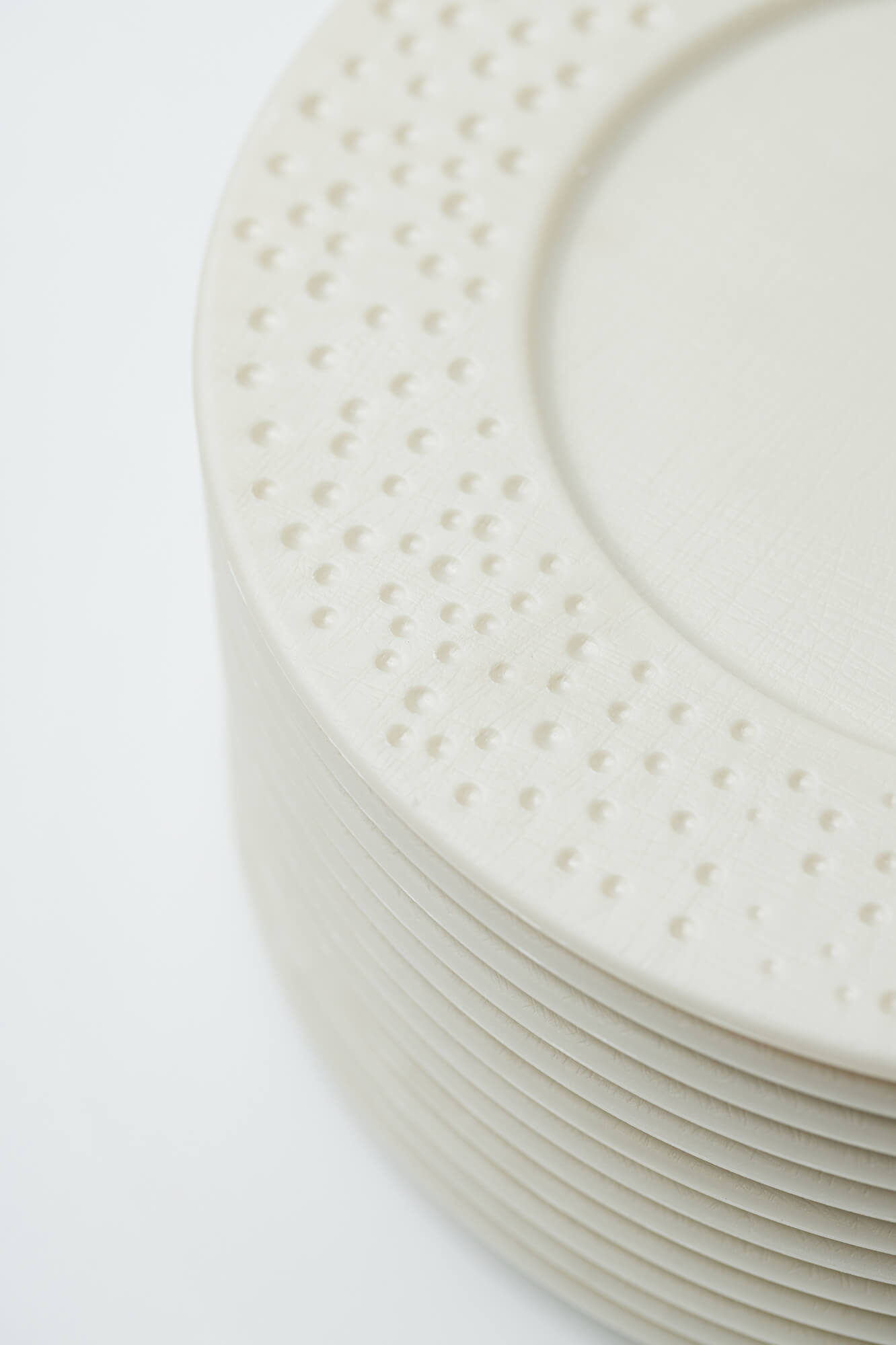 Clean geometry and a dotted rim for chefs who value timeless lines. A modern reinterpretation of classic tableware with refined silhouettes and balanced proportions. Not recommended for use with knives on the dishes.